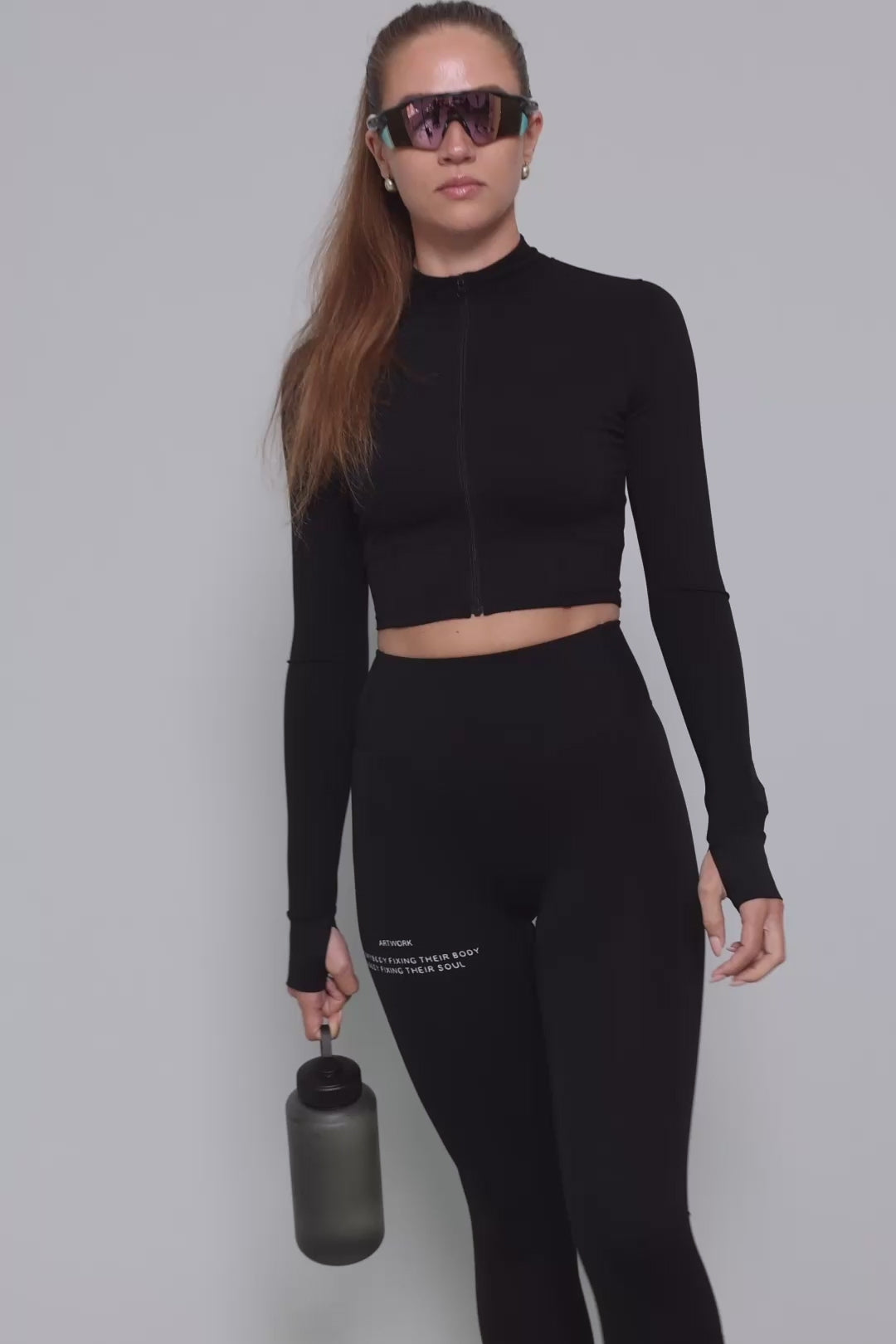 The 11Attention Full Zip Cropped Blouse is built for performance with a sharp, streamlined look. Black, long-sleeve design with thumbholes and a high collar for extra coverage. Full front zip for easy layering and adjustable airflow.